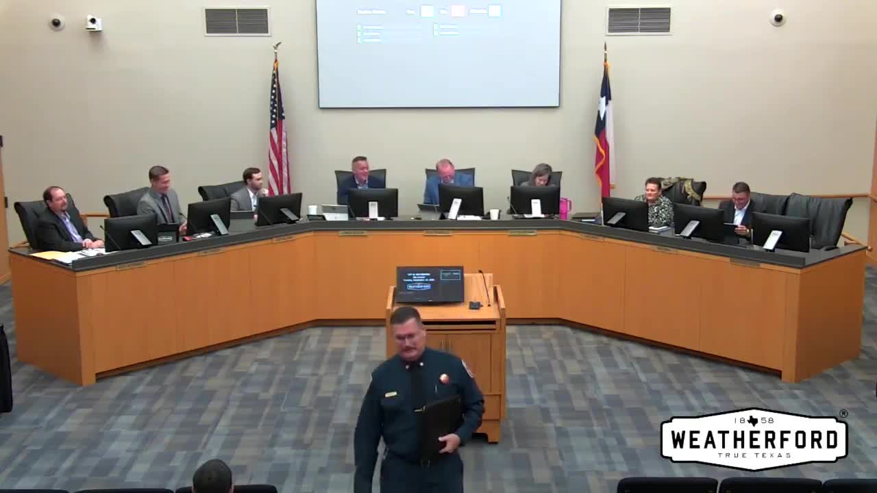The Weatherford City Council approved the purchase of four law-enforcement vehicles — three 2026 Chevrolet Silverados and one 2026 Chevrolet Tahoe — while directing police staff to provide a detailed, itemized list of upfits and accessories at the next council meeting. The agenda item authorized use of the interlocal purchasing cooperative (TIPS) and listed a not-to-exceed total of $483,666.60 for vehicles plus upfitting, with staff explaining that a substantial portion of the total reflects outfitting costs rather than base vehicle prices.