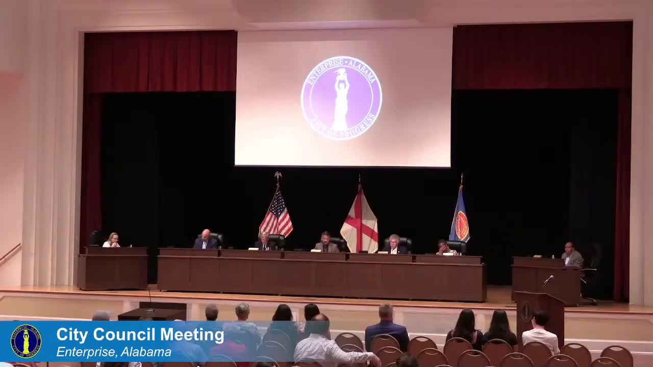 The Enterprise City Council adopted the fiscal year 2026 budget totaling $99,173,800 covering general, capital, sewer and debt funds. A newly sworn member abstained from the vote, citing non‑participation in budget hearings.