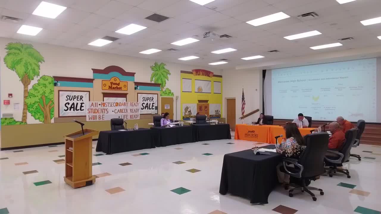 Trustees voted to rename the former John F. Kennedy Elementary as the Mercedes ISD John F. Kennedy Administration Building after consolidating campus operations and relocating central-office staff. Superintendent Dr. Noyola told the board the district consolidated Taylor and JFK Elementary into Harrell Elementary earlier in the year and relocated several district satellite offices into the vacant JFK facility to avoid potential costs from updated fire-code requirements that apply to long-unoccupied buildings. "When you close a facility and you don't open it back up for a while, you become subject to new fire codes," Dr. Noyola said, and the district decided to consolidate central administration functions into that building. He said the proposed official name would preserve the John F. Kennedy reference while clarifying the building’s role. Administration recommended approval. Trustee Rodriguez moved the motion and Trustee Trevino (recorded as the second) seconded. The board then confirmed that district policy requires a unanimous vote of members present on naming matters; the chair called the roll and recorded ayes from trustees present. The chair announced, "The motion carries." Trustees also confirmed staff had already relocated to the new administration building: Dr. Noyola said, "We are already over there as of Monday. Everybody that was relocating has been relocated," and that the former central office premises were now vacant. No additional fiscal details or timeline for signage or formal dedication were included in the materials presented to the board. The renaming completes the administrative consolidation of district offices into the former JFK campus.