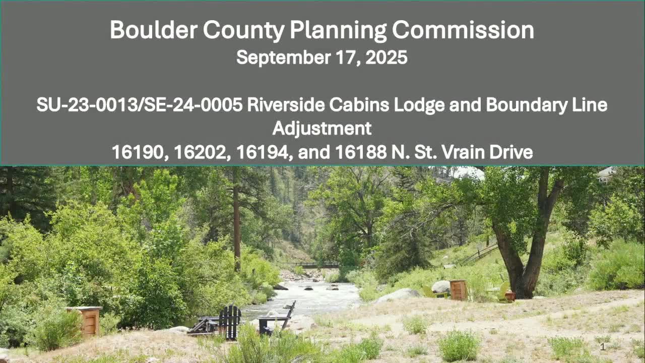 Boulder County Planning Commissioners on Sept. 17 recommended conditional approval of a special-use review for the Riverside Cabins Lodge, a longstanding lodging operation northwest of Lyons, while adding conditions and directions aimed at water, septic, floodplain and access issues.