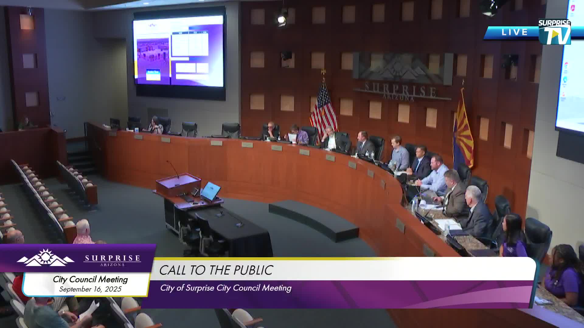 Multiple speakers during the public‑comment period urged the Surprise City Council to terminate the city’s contract with Flock Safety and remove surveillance cameras, citing alleged costs, data‑retention risks and examples from other Arizona cities.