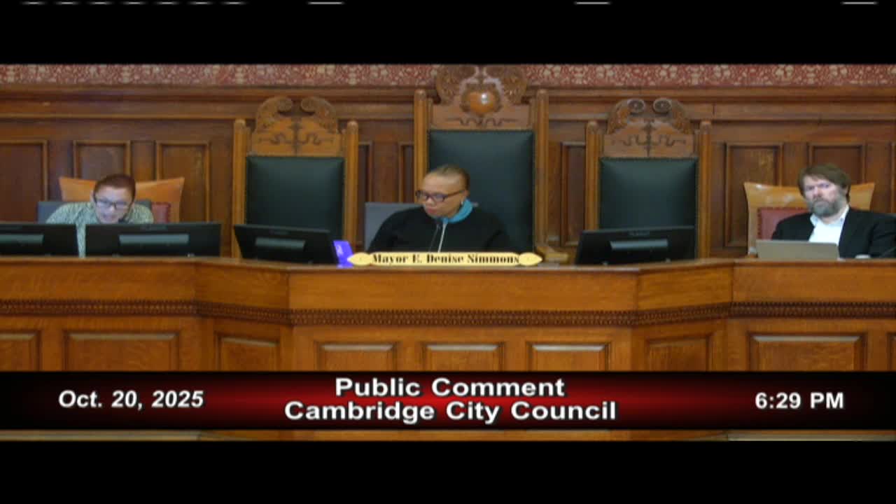 Public comment and concerns: More than 40 people signed up for the citywide public comment that included lengthy testimony from small‑business representatives and business associations opposing a proposed 22% increase in the commercial rate for FY26. Karen Kelly of Cambridge Local First and Denise Jillson of the Harvard Square Business Association urged delay or additional analysis of economic impacts and asked the council to examine exemptions or targeted relief for small commercial properties. Speakers argued the increase disproportionately burdens small, locally owned businesses and requested a state small‑business exemption be considered.