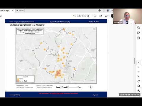 City of College Park contract police presented September crime statistics at the public safety meeting, reporting two carjackings, two assaults, 26 thefts from autos, 17 other thefts and seven stolen vehicles concentrated along the Baltimore Avenue corridor.