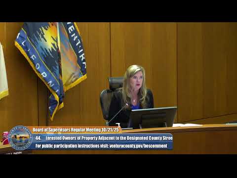 The Ventura County Board of Supervisors on Oct. 21 introduced an ordinance to prohibit overnight parking and camping on designated county streets and highways adjacent to agricultural land, and approved a $250,000 first‑phase appropriation to install regulatory signage on the highest‑priority segments.