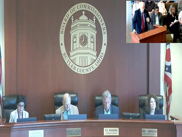 Butler County commissioners approved a package of finance and departmental resolutions, including cash transfers, budget transfers, purchase-order increases and several contracts for infrastructure and professional services.