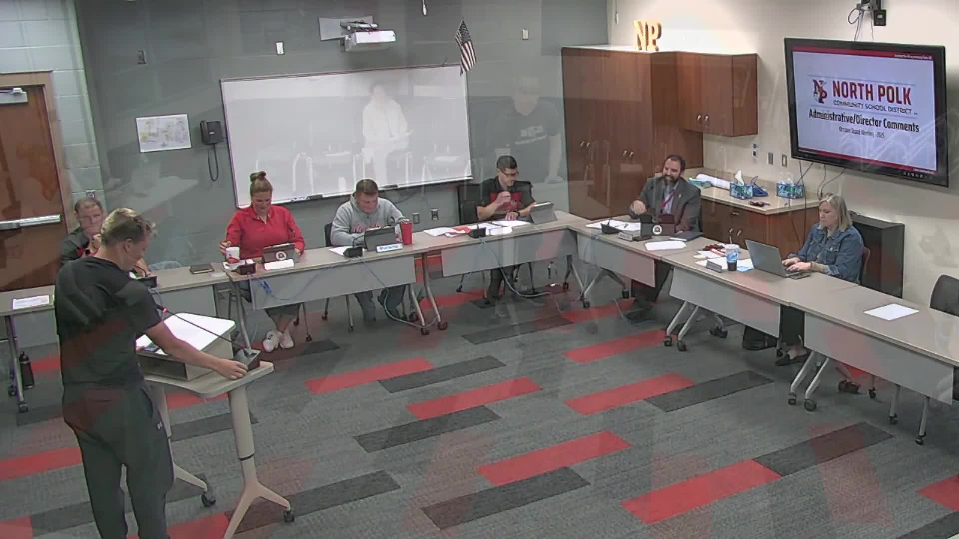 Speakers (names and roles as identified in transcript):[{"name":"Colton Bu","role_title":"Student council president","affiliation_type":"citizen","affiliation_name":"North Polk High School Student Council"},{"name":"Hunter Fleischer","role_title":"Communications Director","affiliation_type":"government","affiliation_name":"North Polk Community School District"},{"name":"Taylor Irvin","role_title":"Student Engagement Counselor","affiliation_type":"government","affiliation_name":"North Polk Community School District"}]