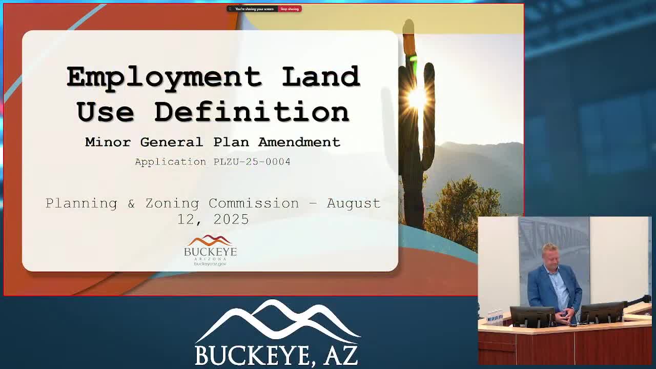 The Buckeye Planning and Zoning Commission on June 10 recommended that City Council consider a minor General Plan text amendment to allow, under limited circumstances, residential and commercial uses within large employment-designated properties. The commission voted to send case PLZUD-25-0004 to council with a recommendation of approval.