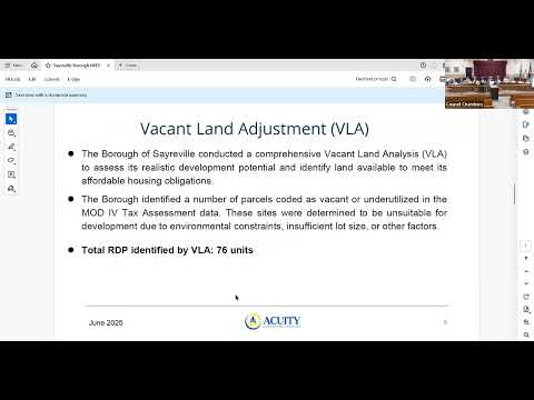 Peter, a planner with Acuity Consulting Services, told the board the firm began with the state’s assigned new‑construction obligation of 270 units, proposed a competing estimate of 210 and ultimately settled at 240 after negotiation. He said the borough’s vacant‑land screening eliminated parcels that did not meet criteria such as a minimum parcel size and environmental constraints, producing the RDP of 76 units. “We were able to demonstrate that there’s only enough property that’s vacant and that meets all these criteria for 76 affordable housing units,” he said.