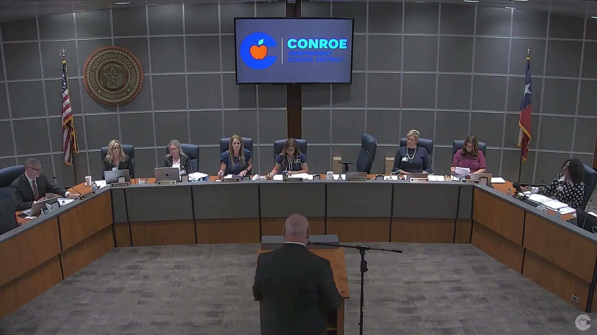 Sources and attribution - Presentation and legal overview: Doctor Murrell, district staff/legal presenter - Board votes and procedural motion: Conroe ISD Board of Trustees roll call