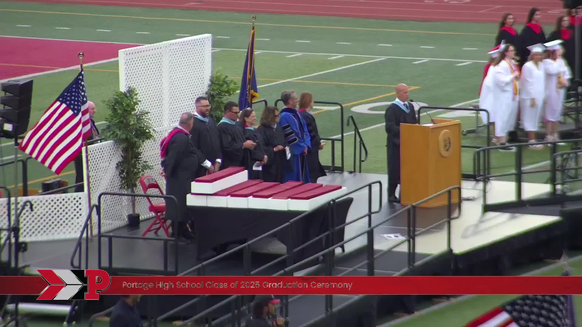 Portage High School held its Class of 2025 commencement at a ceremony where Dr. Amanda Alaniz, superintendent of Portage Township Schools, urged graduates to value relationships and choices over rankings as they leave high school.
