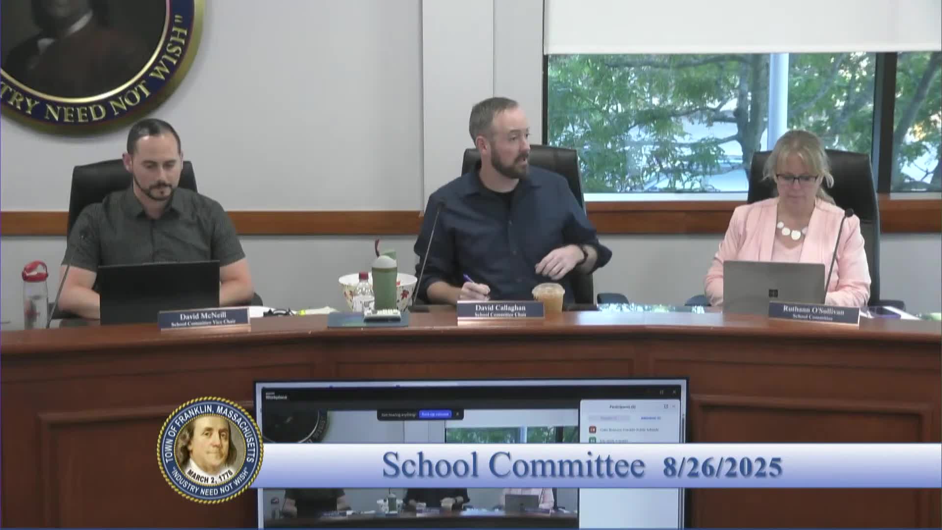 Ending: Staff and committee members described positive energy among educators and administrators in the days before school. Parents and committee members were encouraged to watch district communications and the Franklin Matters post about drive patterns at the high school.