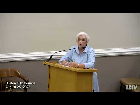 A Market Street merchant told the Clinton City Council that prolonged utility and sidewalk work is blocking storefront access and hurting sales; city staff outlined a phased schedule and said work is grant‑funded and temporary.