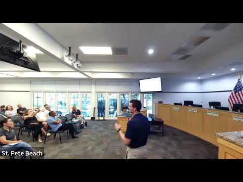 City staff and Don CeSar Place residents met to discuss repeated tidal and rainfall flooding, short‑term responses and a proposed neighborhoodwide resiliency plan that staff estimated at roughly $28,000,000–$30,000,000 and said would require design funding in the next fiscal year. Camden, a city stormwater staffer, told residents the city will ask the City Commission to include design money in the FY2026 budget and to competitively procure an engineering firm to convert earlier concepts into construction‑ready designs.