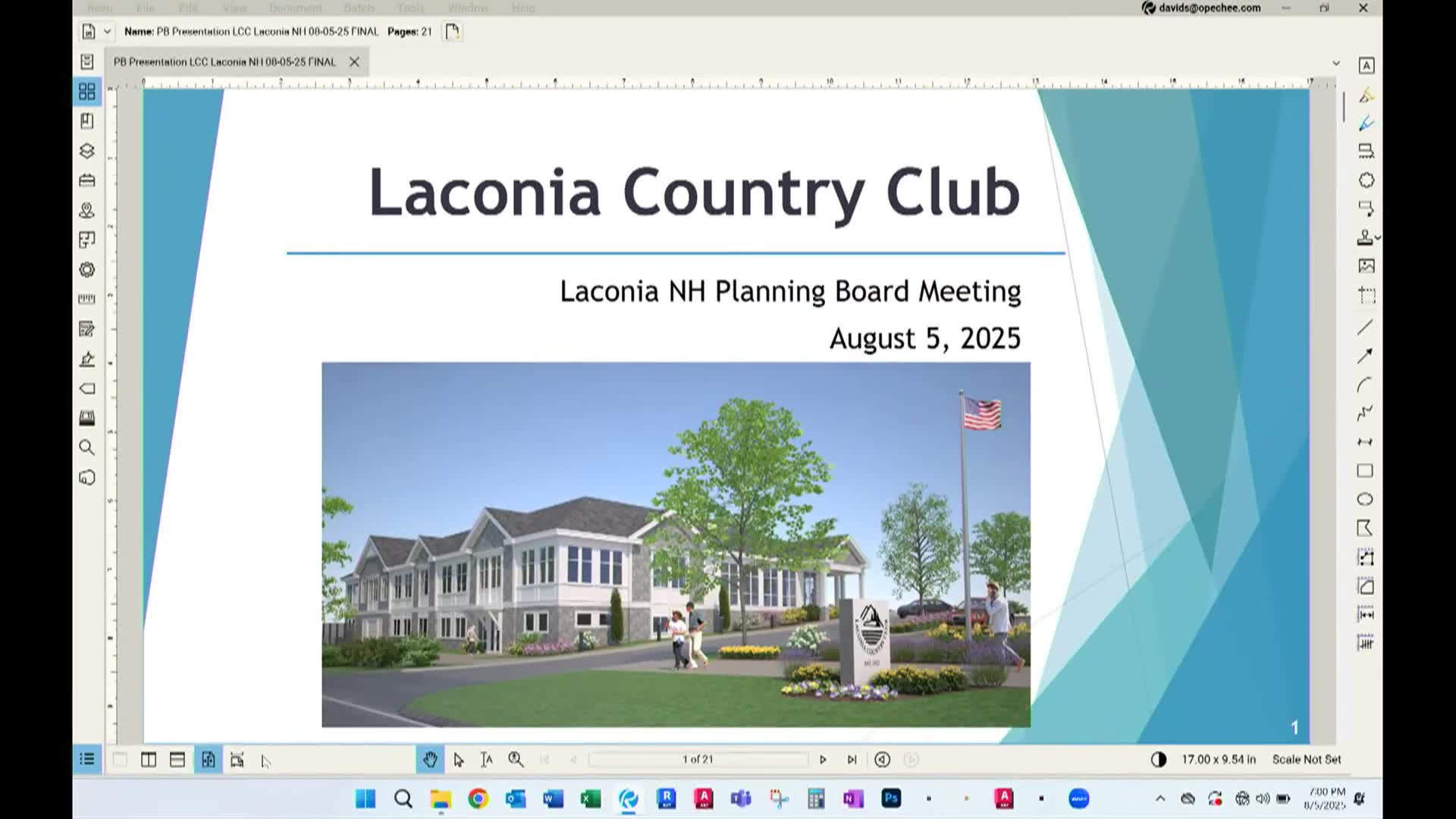 The Planning Board granted a conditional-use site plan approval for a new two-story clubhouse at Laconia Country Club (607 Elm Street), with conditions including NFPA-compliant sprinkler and alarm systems, erosion controls, performance guarantees and impact fees.