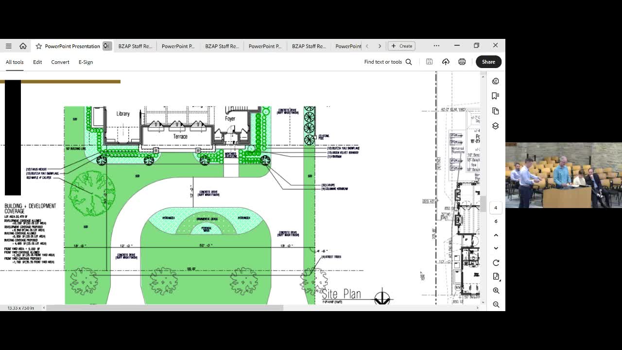 Next steps: applicant to submit a revised plan reflecting the agreed 14-by-20 (resulting in the 12-foot encroachment) to the building department for permit processing.