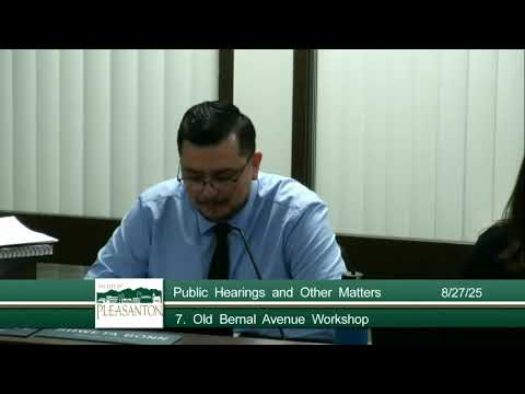 A Pleasanton Planning Commission workshop on Aug. 27 focused on a PUD application to demolish an existing two‑story commercial office building at 231 Old Bernal Avenue and build a three‑story single‑family residence with a 725‑square‑foot ground‑floor live‑work area.