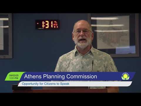A consultant told the Athens City Planning Commission on Sept. 3 that the city’s land-development regulations are fragmented across multiple code chapters and that a consolidated rewrite could reduce conflicts and speed redevelopment. The consultant, David, said the audit found numerous overlapping chapters and inconsistent terminology and recommended a user-friendly structure such as a land-use table and dimensional standards tables.