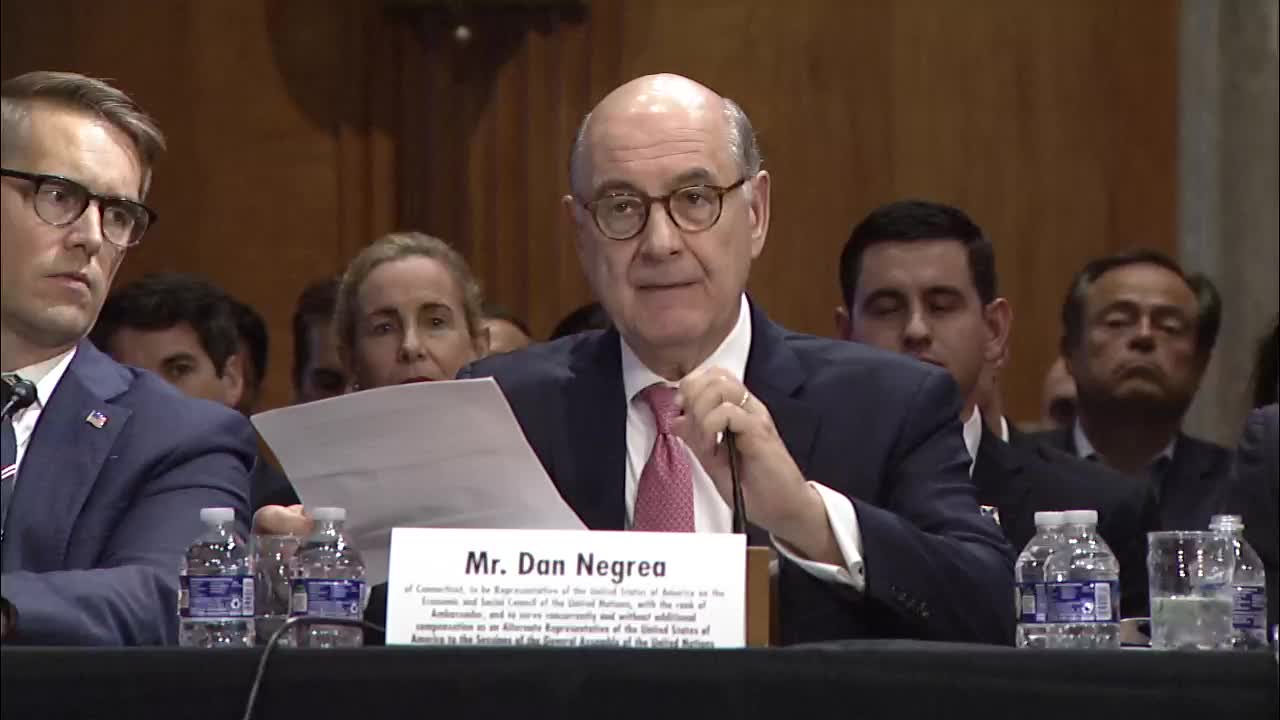 Dan Negrea, President Trump’s nominee to be the U.S. representative on the United Nations Economic and Social Council (ECOSOC), told the Senate Foreign Relations Committee he would press UN reform, increase accountability and promote private‑sector engagement to counter an authoritarian development model he attributed to China.