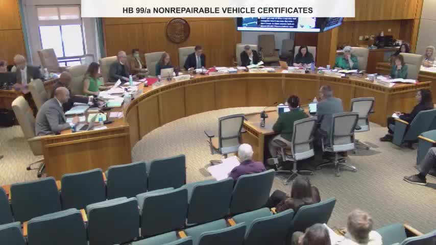 A sponsor told the committee House Bill 99 creates a standardized, statutory process for insurance companies to obtain salvage titles for vehicles declared total losses when insurers cannot secure the title from a prior owner after the carrier pays a claim. The sponsor said the Traffic and Motor Vehicle Division (MVD) and the Tax and Revenue Department had previously handled this through administrative procedure and that statutory enabling language is now needed to codify a long‑standing practice.