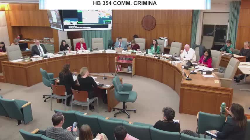 House Bill 354, creating a six-year Community Criminal Justice Diversion Project to route eligible people with behavioral health needs away from prosecution and into treatment, received a "do pass" recommendation after extensive testimony on structure, local implementation and data collection.