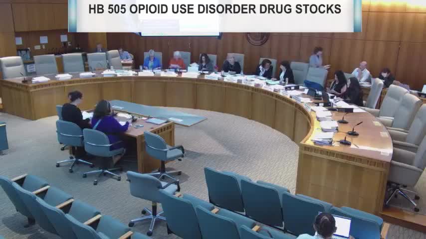 House Bill 505, a measure intended to reduce interruptions in treatment for people with opioid‑use disorder by requiring retail pharmacies to maintain a baseline buprenorphine stock and creating distributor reporting, was advanced by the committee with a do‑pass recommendation.