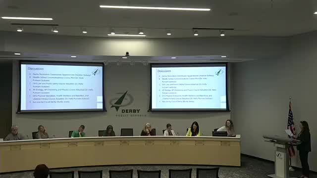 District administrators presented several proposed seven‑year curriculum adoptions at the April 28 Derby Board of Education meeting and provided cost estimates for each. The presentations were part of the district’s ongoing materials‑adoption cycle; trustees debated priorities and the timing of purchases amid other capital needs.