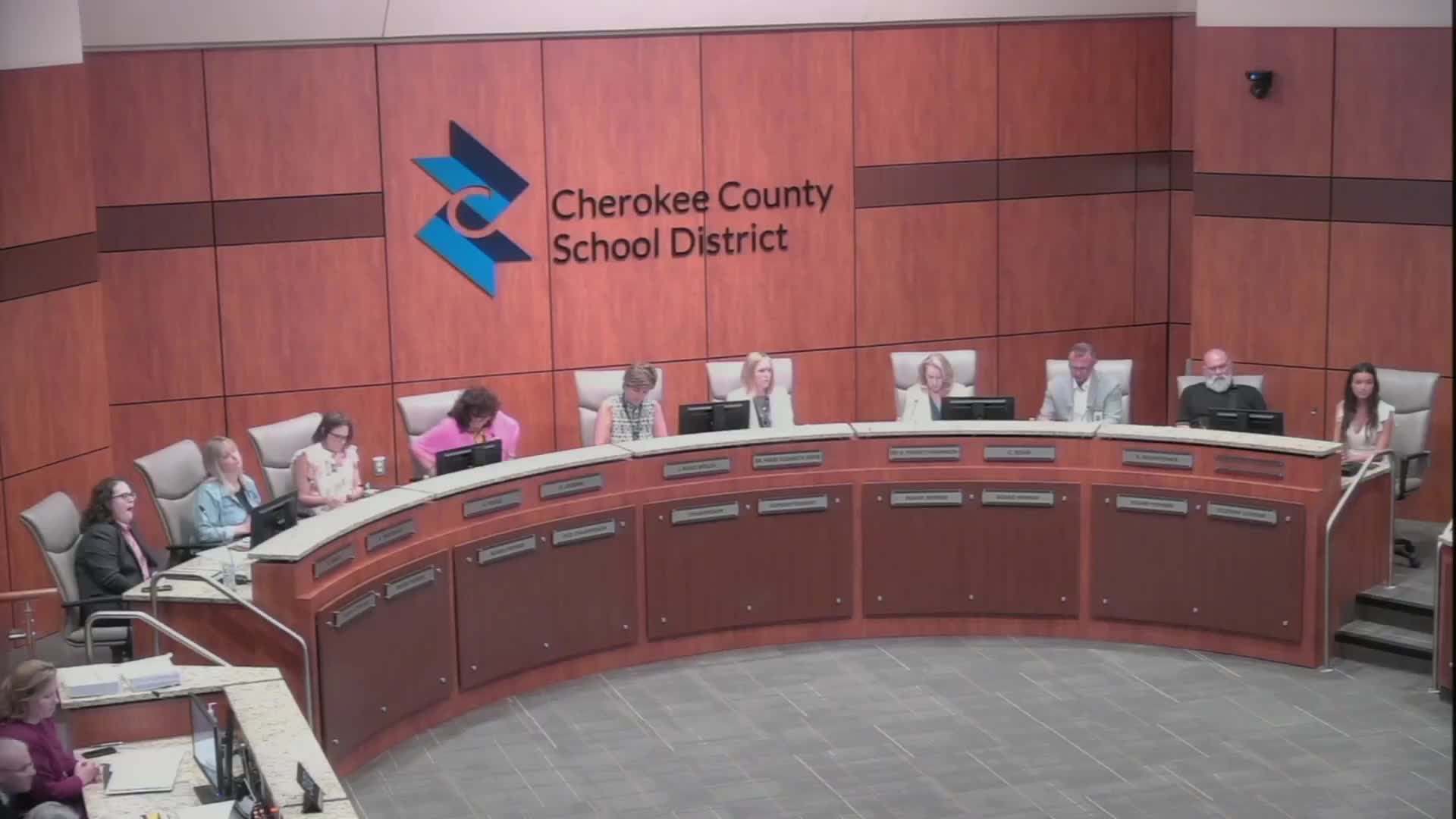 District capital‑improvements staff told the board on May 15 that interior work at the Cherokee High School replacement is progressing and that athletic‑facility work, including bleacher installation, is underway. “That project is currently on schedule and within budget,” a district capital‑improvements presenter said.