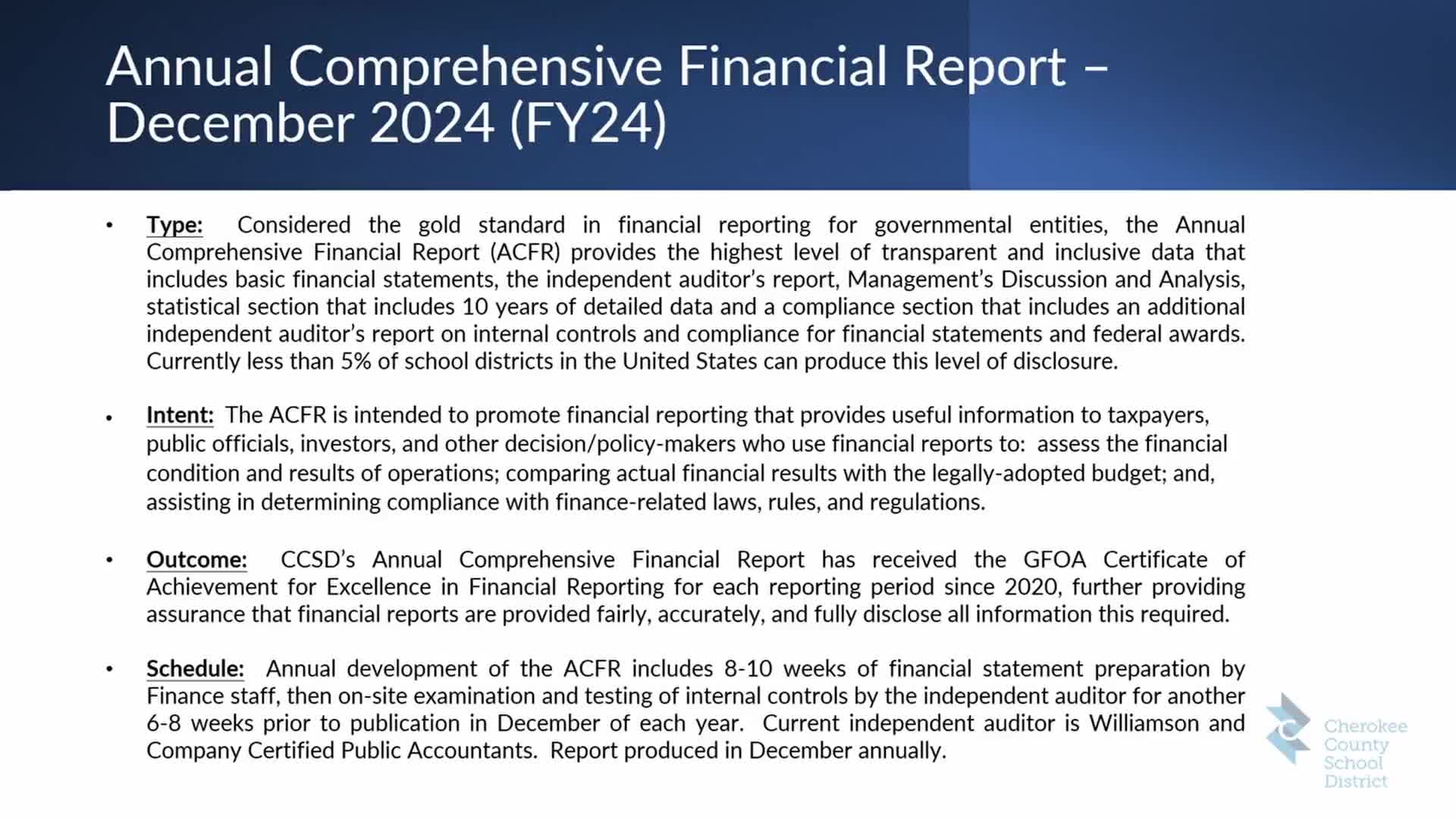 Dr. Davis also reported on facilities planning. She described the Cherokee High School replacement project as a district priority and said the district will host community feedback sessions about the future of the current Cherokee High School campus and the CHS North site as part of the transition planning.