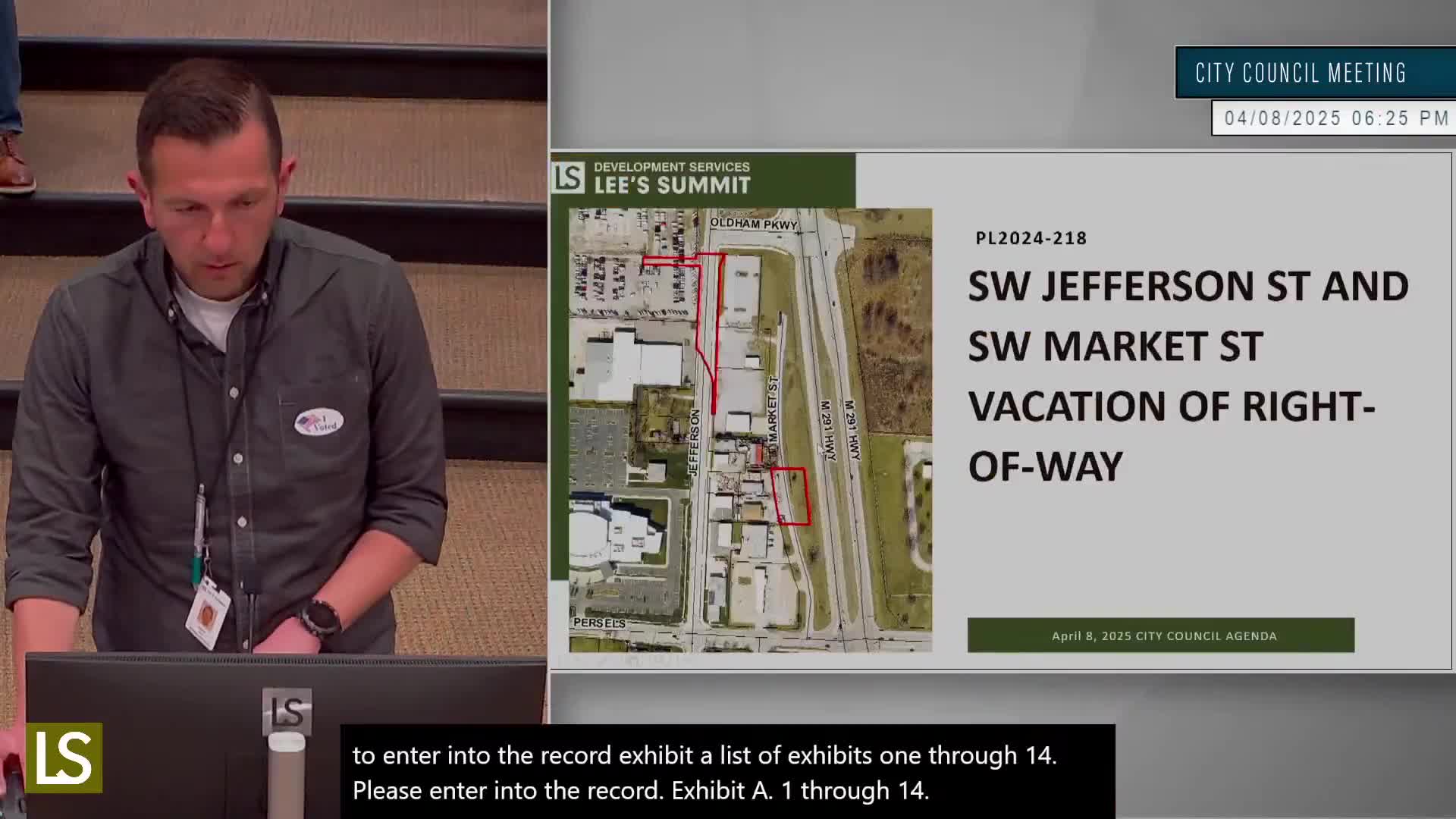 Lee's Summit City Council advanced an ordinance on April 8 to vacate portions of Southwest Jefferson Street and adjacent miscellaneous right‑of‑way to clear the way for the Oldham Village redevelopment. Staff recommended approval contingent on conditions that set trigger points for different segments of Market Street to be vacated when adjacent improvements or conveyances occur.