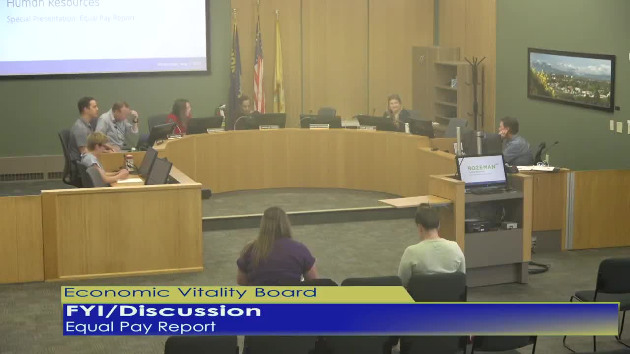 Jamie Norvey of the City of Bozeman HR department presented the city's 2024 equal pay report, citing progress on transparency and pay processes but showing persistent gender gaps in some education bands. Board members asked for role‑level comparisons, retention data, regression analysis and clearer year‑over‑year outcomes.