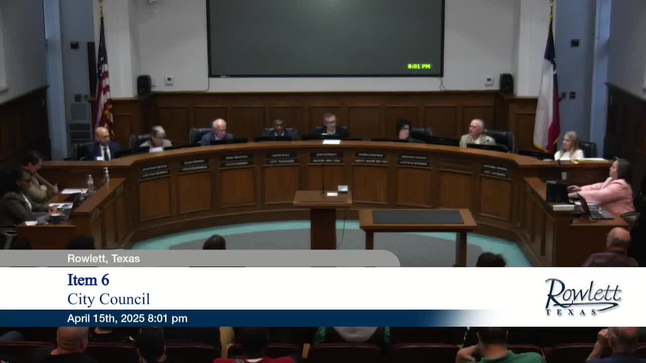 The Rowlett City Council on April 15, 2025, approved a package of development, infrastructure and financial actions and rejected a rezoning request after roughly three hours of public meetings and presentations.