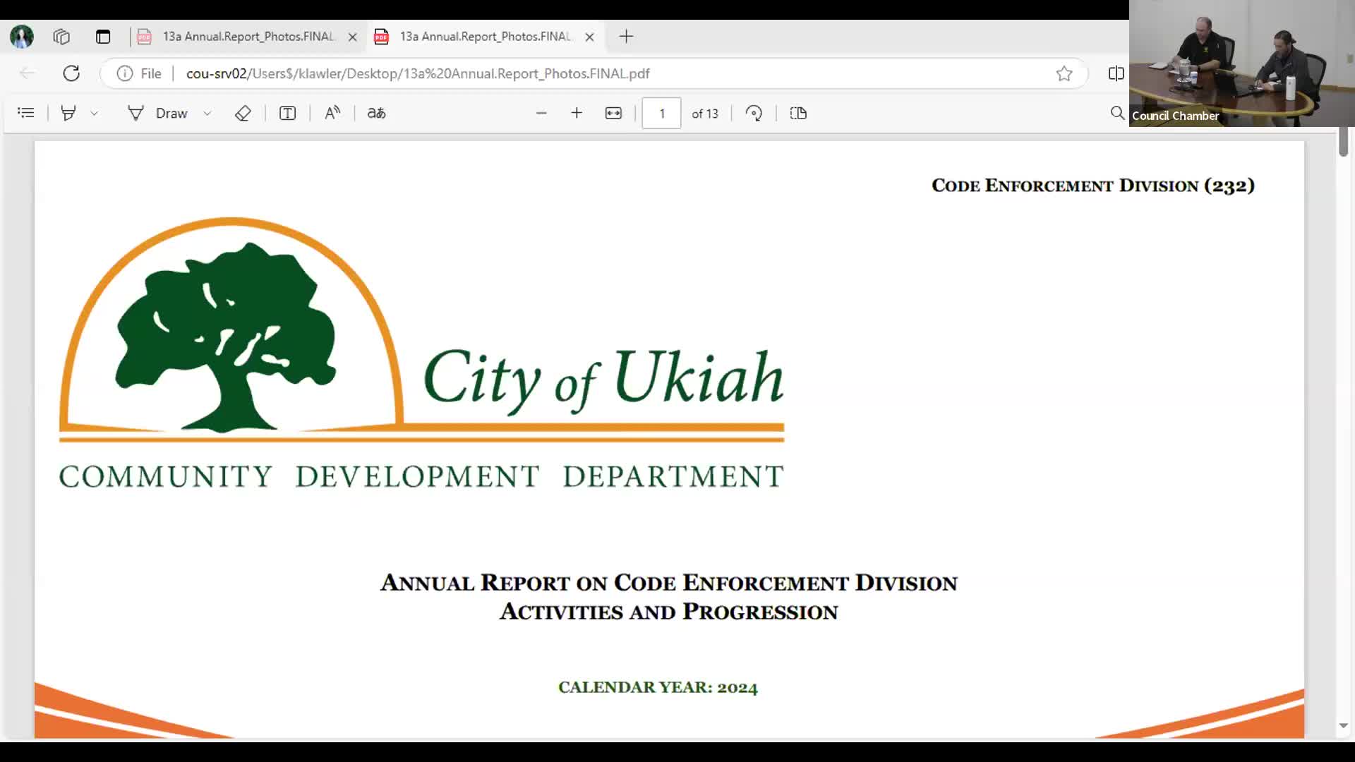 The City of Ukiah’s code enforcement division presented its annual report for 2024 and highlighted more than 350 inspections, average case resolution times of roughly 23 days, and six notices of violation issued last year.