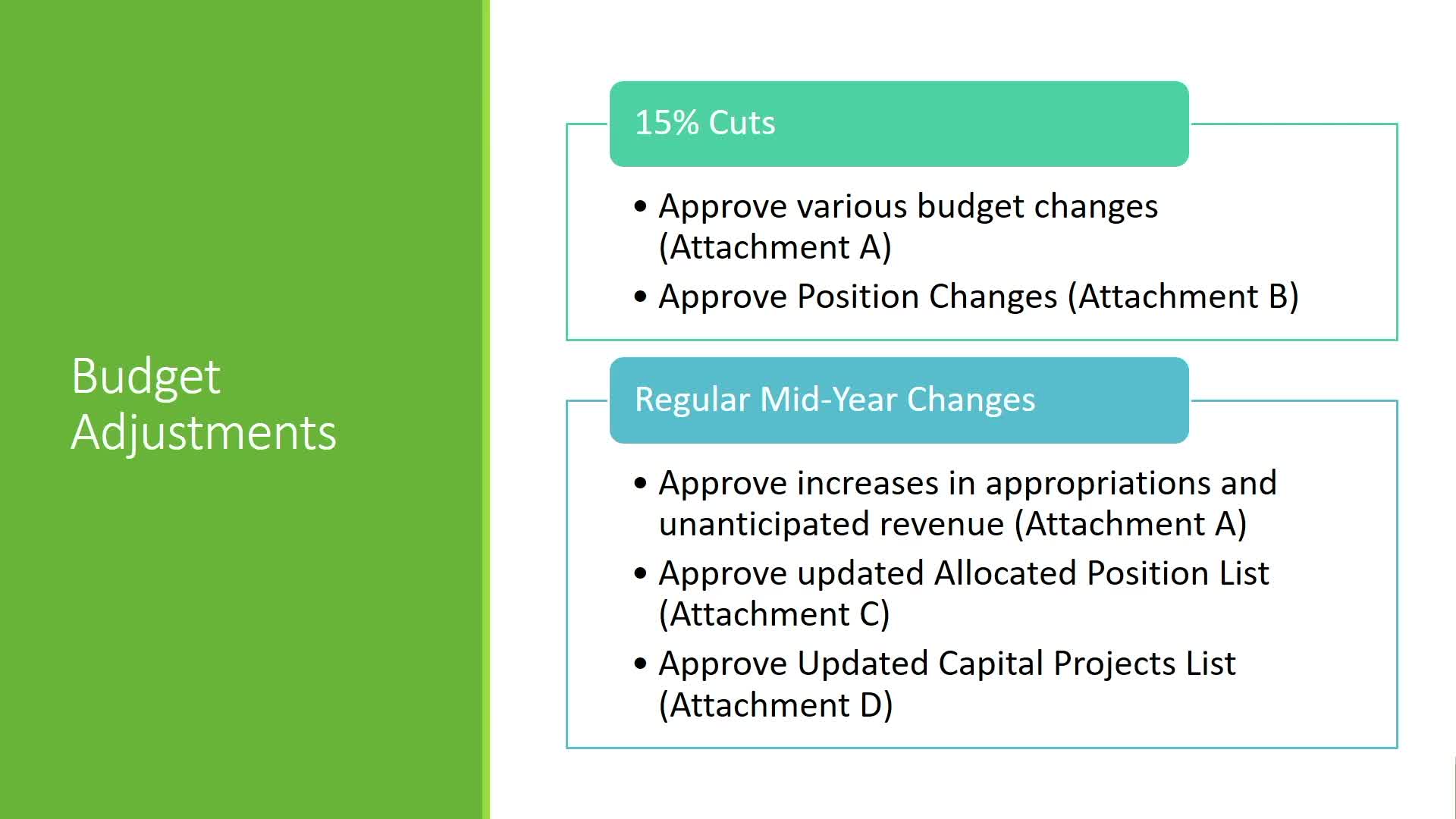 The Tuolumne County Board of Supervisors on Wednesday adopted a midyear budget package that implements board direction to reduce general-fund spending and address projected deficits.