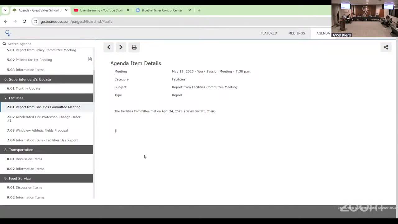 Facilities committee members updated the board on a conceptual athletic-field study and imminent work at Clark Field and the 5–6 Center. The committee said conceptual estimates show a new turf field would run roughly $820,000 plus about $30,000 for fencing, while maintaining grass fields would cost about $38,000 a year. The report is conceptual and administration said additional geotechnical study and drainage analysis are required before final recommendations.