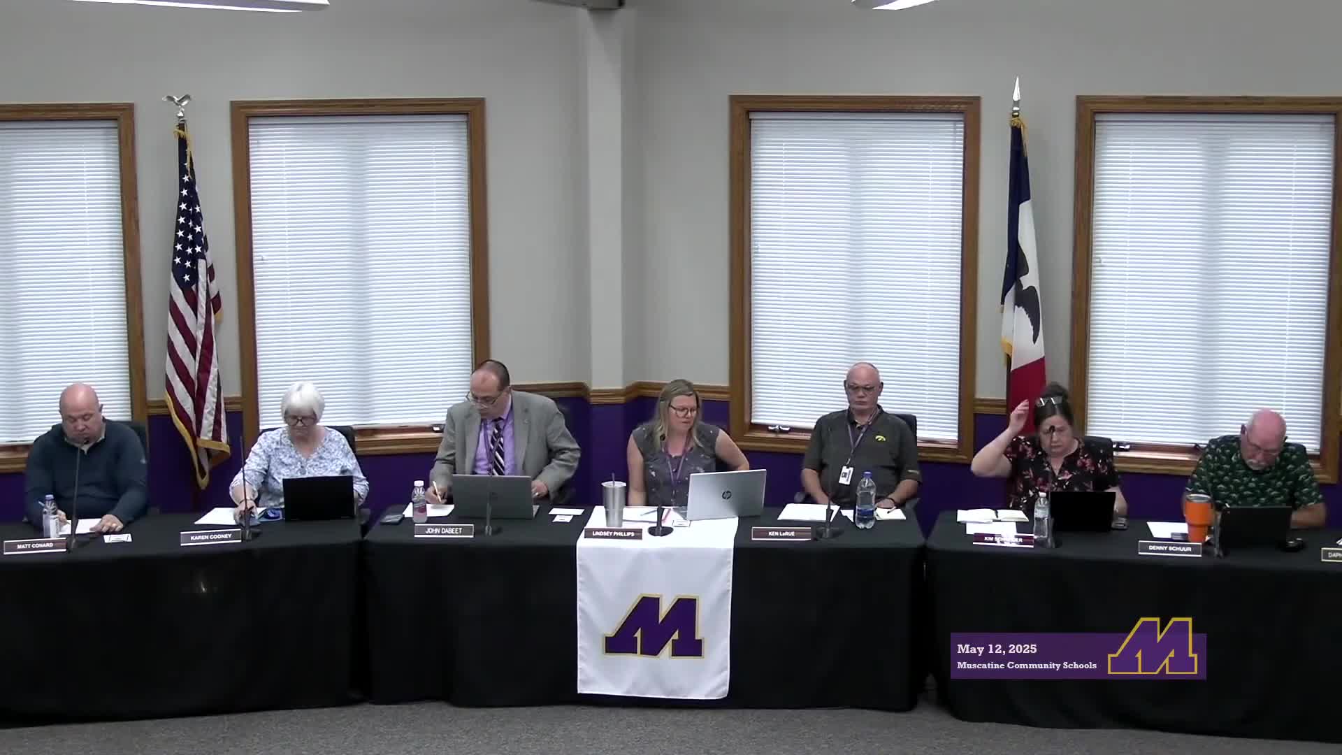 The Muscatine Community School District Board of Education opened a public hearing May 12 to consider an amendment to the fiscal year 2025 budget, received no public comments, and approved the budget amendment.