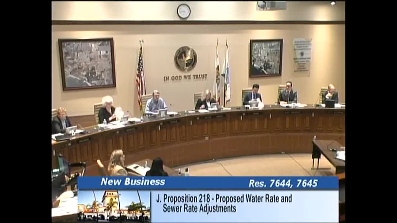 The council voted to begin formal Proposition 218 hearings and mail notices about proposed water and sewer rate increases that would fund $34–$44 million in water projects and $15–$19 million in sewer work; staff set a July 14 public hearing and two community outreach sessions in June.