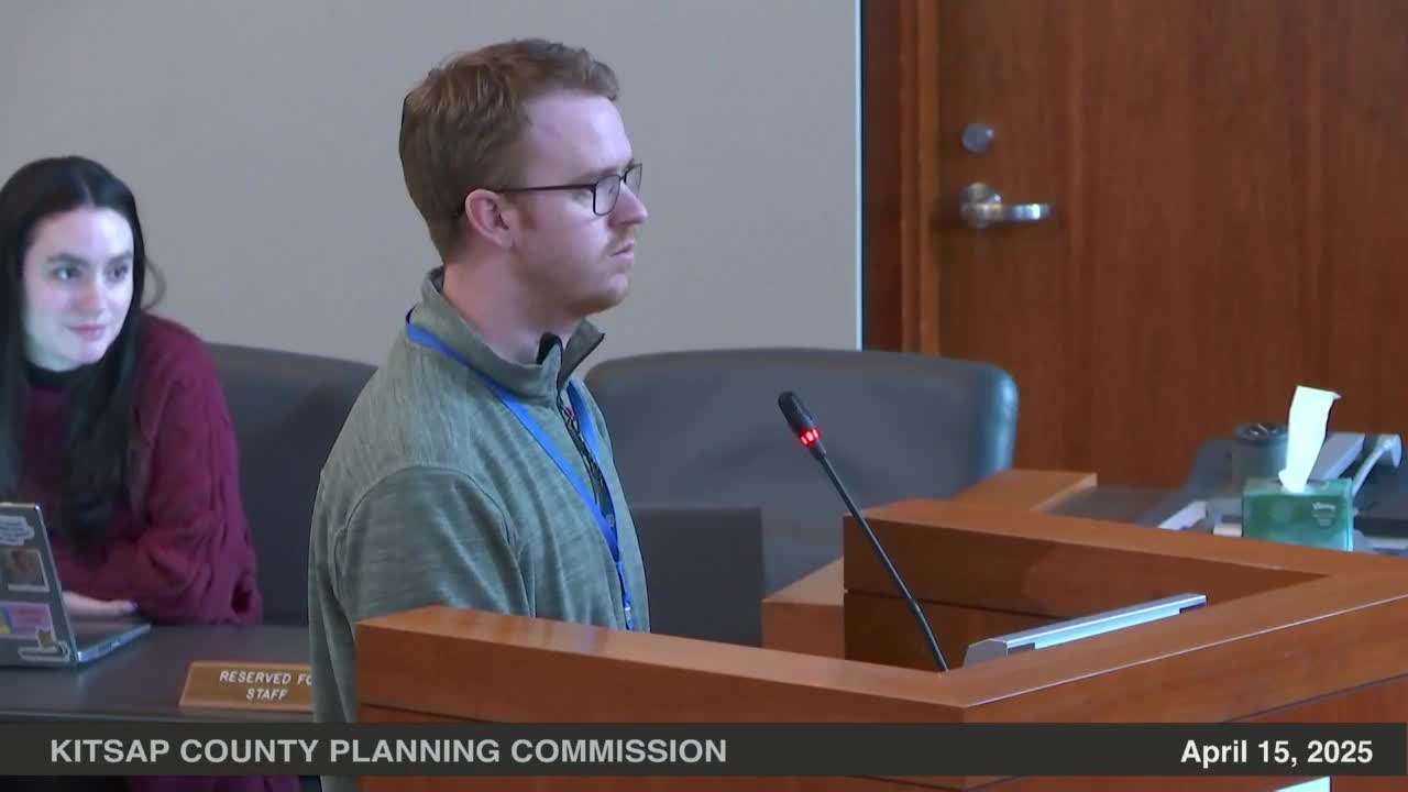 Kitsap County staff presented a narrowly scoped administrative code update April 15 to add cross-references, correct inconsistencies and implement state parking law changes; the Planning Commission opened a public hearing and extended the written-comment period to April 25.