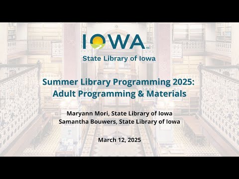 The State Library of Iowa on a recorded webinar walked library staff through the 2025 iRead resource guide for adult summer reading and programming, stressing a June 1 download deadline and a range of ready-to-run program ideas and promotional assets.