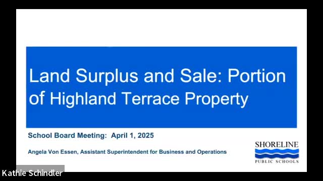 The Shoreline School Board voted unanimously April 1 to adopt Resolution 2025‑6 declaring approximately 8,000 square feet of unused property adjacent to Highland Terrace Elementary School surplus and approving its sale to the City of Shoreline for the appraised value of $130,200.