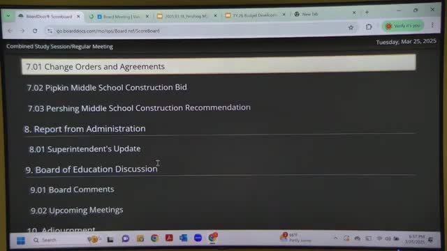Trustees approved a set of change orders and agreements tied to the 2023 bond program, including six‑foot safety fencing for elementary playgrounds and a $129,104 change order for Reed building project.