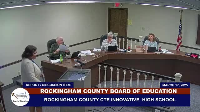 District leaders described a new Career and Technical Education Innovative High School to launch on Rockingham Community College’s campus with three pathways — health science, construction and advanced manufacturing — credential stacking, dual enrollment and work-based learning; the program received 74 applications for 40 first-year seats.