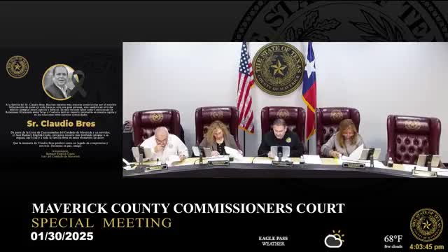 Here are the key formal actions taken by the Maverick County Commissioners Court on Jan. 30, 2025. All motions below were approved by unanimous voice vote as recorded in the meeting transcript unless otherwise noted.