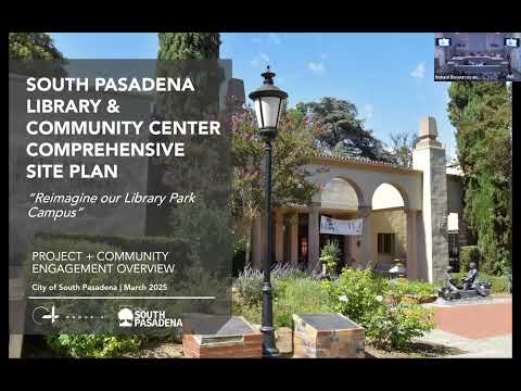 Kathy Billings, director of the South Pasadena Public Library, briefed the Natural Resources and Environmental Commission on a site-plan project that will study whether to renovate the existing library and senior center or build a new combined library and community center in Library Park.