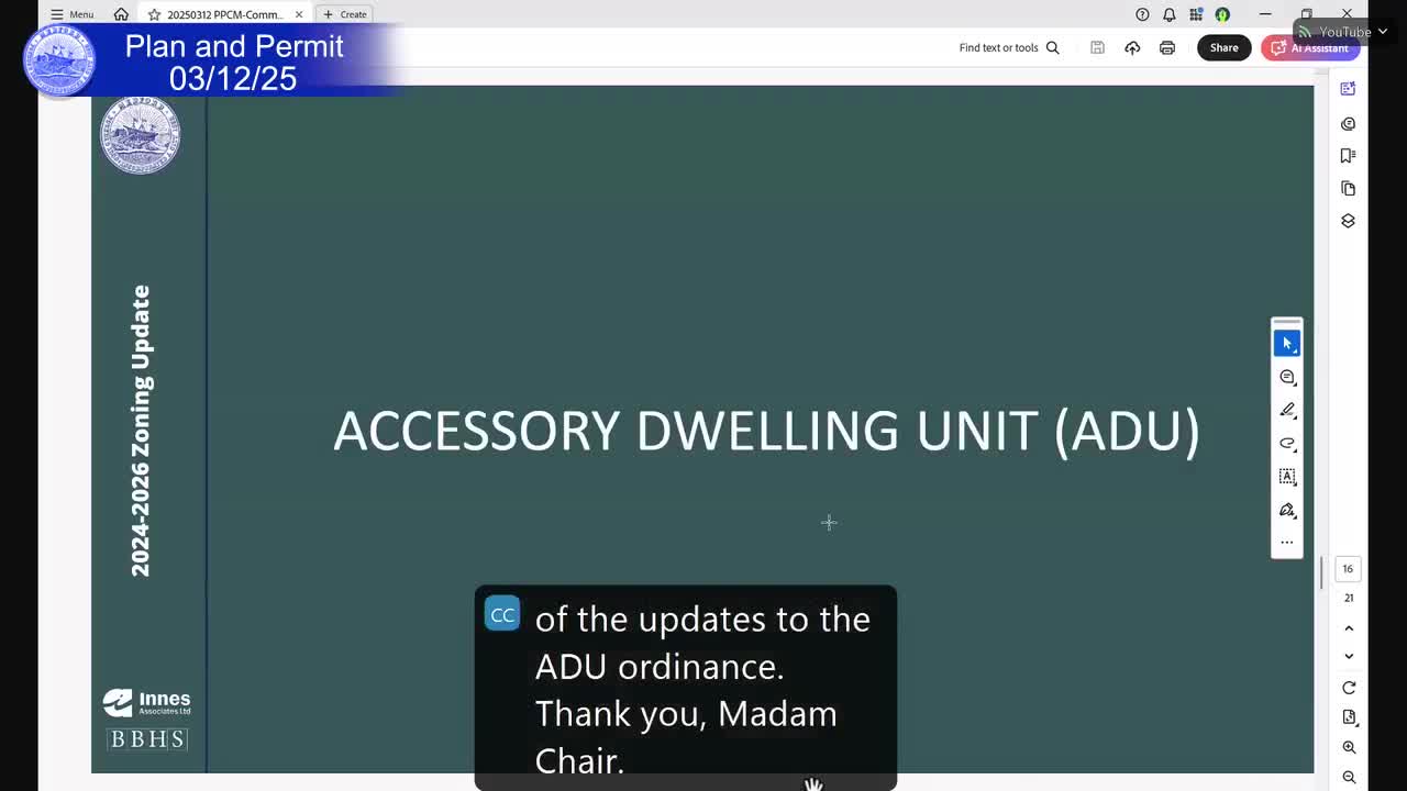 City planning staff and consultant Paola Ramos Martinez briefed the Planning and Permitting Committee on mandatory changes under the new state ADU law and options Medford must still decide, including where ADUs will be allowed beyond single‑family districts, whether second ADUs require special permits, and short‑term rental rules.