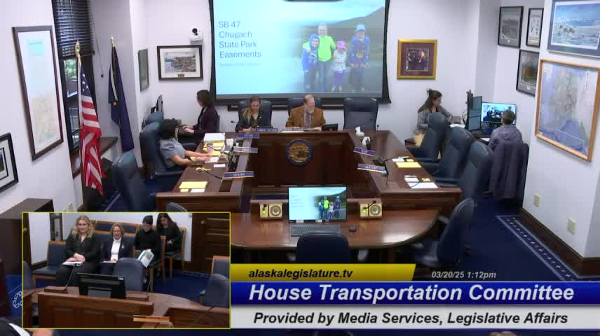 Senate Bill 47, presented to the Alaska House Transportation Committee on March 20, 2025, would authorize an easement allowing the Municipality of Anchorage to maintain a short, currently unmaintained section of Canyon Road that crosses Chugach State Park and provides access to the Rabbit Lake and Flat Top trailheads.