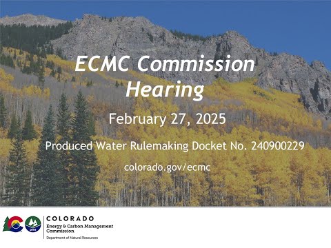 The Colorado Energy and Carbon Management Commission held a daylong Feb. 27 public rulemaking on implementing House Bill 23-1242, taking testimony on phased statewide targets to increase recycling of oil-and-gas "produced water," a tradable intra-basin credit system, quarterly/annual reporting and a contested prohibition on new centralized treatment or storage facilities in areas designated as "disproportionately impacted communities."