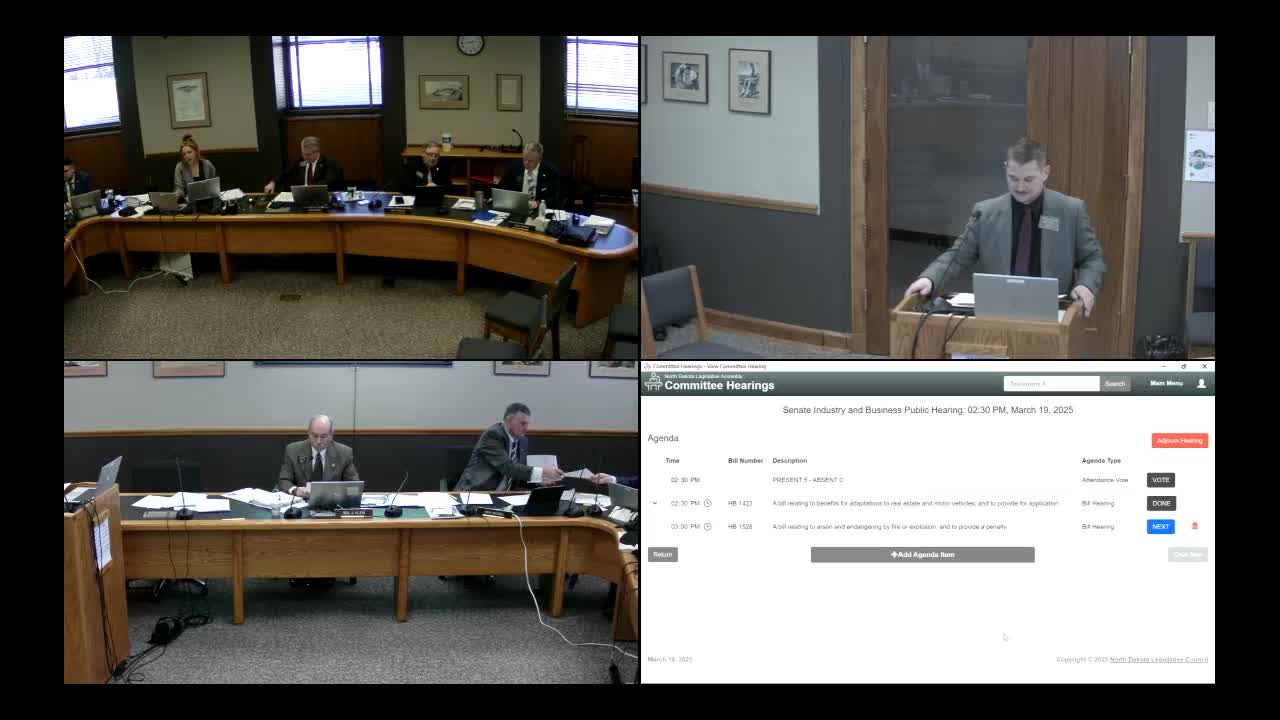 Representative Matt Ruby, District 40, told the Senate Industry and Business Committee that House Bill 1528 was drafted with input from the Bureau of Criminal Investigation and the attorney general’s office to address situations in which a person intentionally burns property shared with another party and existing arson law does not allow criminal charges.