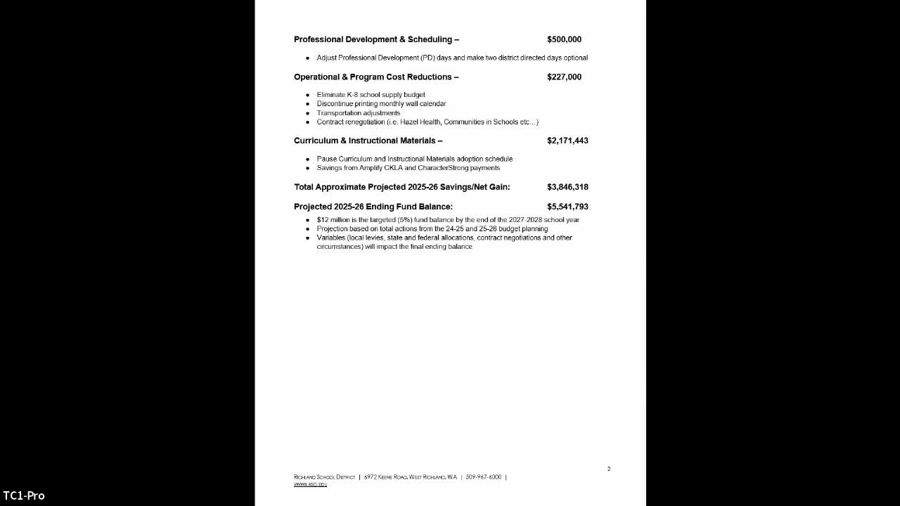 The Richland School District board approved first reading of Policy 3600 (Student Records) and approved the consent agenda. Both actions passed on voice votes; staff said procedural updates accompany the policy change.