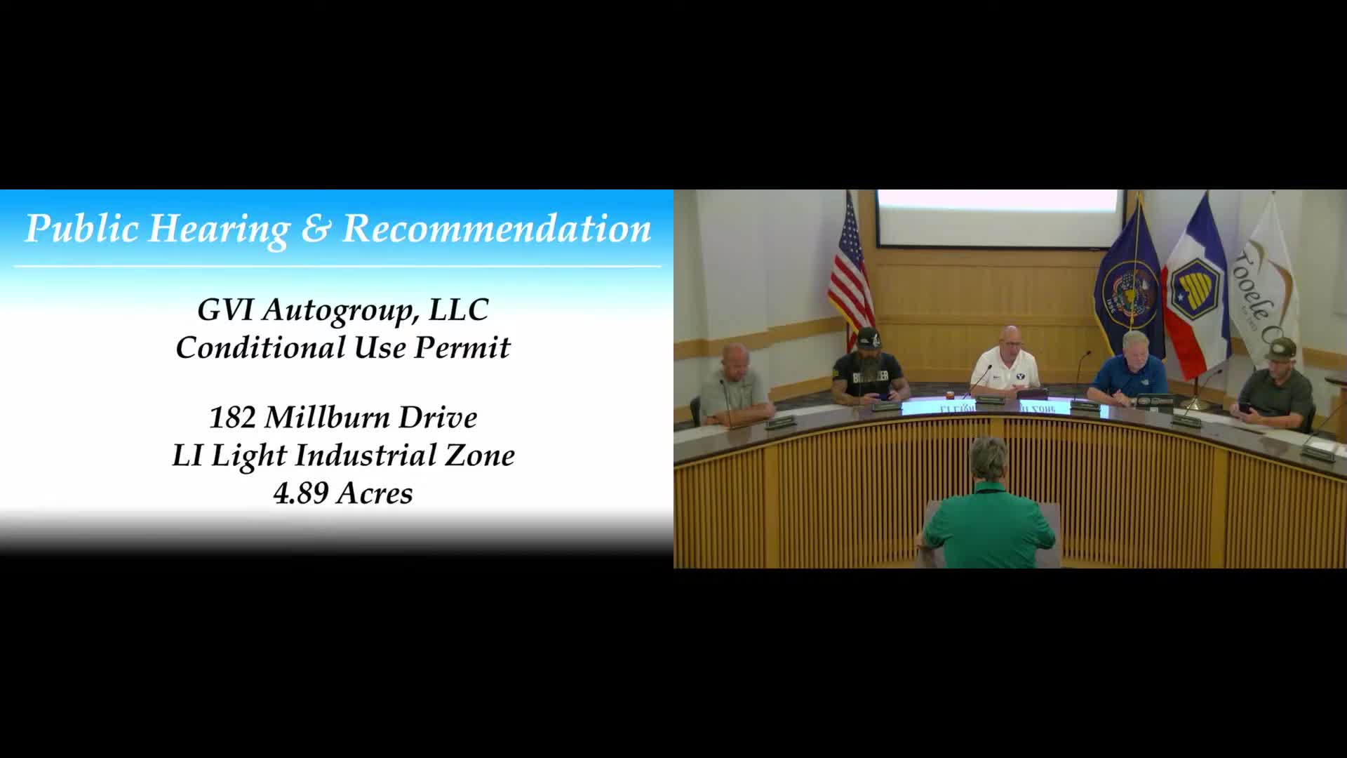 Roman Gurlov, representing GVI Auto Group, told commissioners the business intends to keep most damaged vehicles inside the warehouse and described environmental precautions: "Our plan is to have damaged, cars mostly parked, inside inside the warehouse," he said, adding that vehicles would be disassembled and fluids drained when work is done to prevent spills. Gurlov also said the company wants to partner with Tooele Technical College to provide student training opportunities.