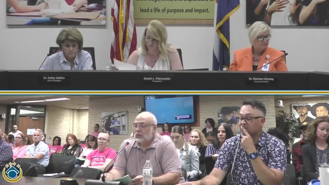 Michael Mays of the Pueblo Education Association told the board during public comment that PEA members ratified tentative agreements with the district by a 97% vote and asked the board to approve a five‑year extension of the negotiated agreement. He said the extension would provide “stability and security” and would not impinge management rights.